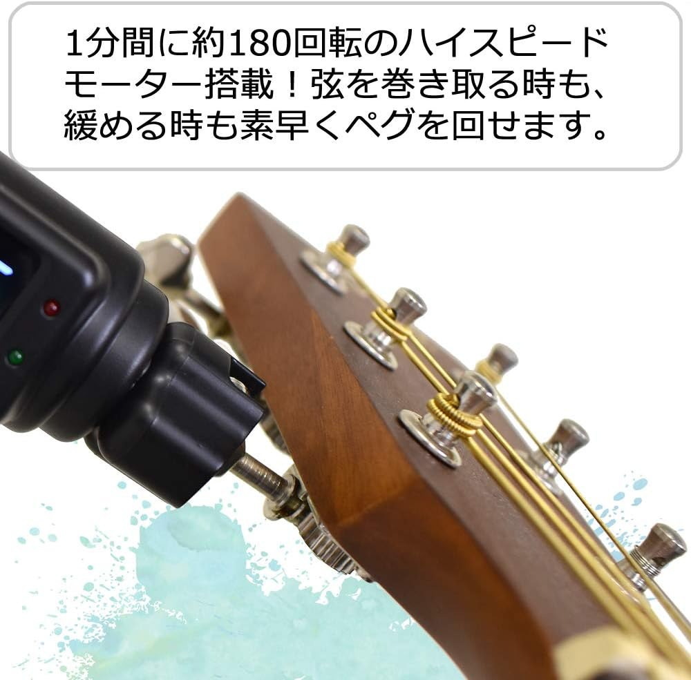 1分間に約180回転のハイスピードモーター搭載!弦を巻き取る時も、緩める時も一瞬です。