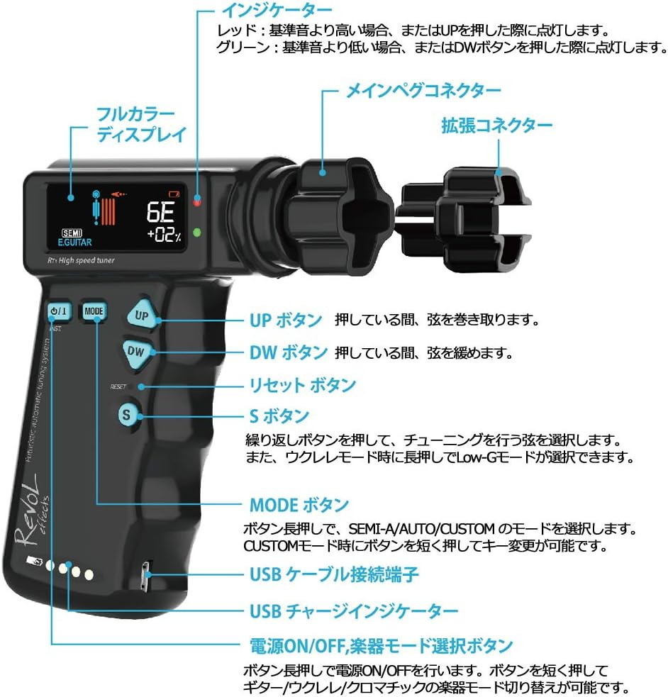【内容】RT1 High speed tuner、ペグコネクター、USBケーブル、取扱説明書