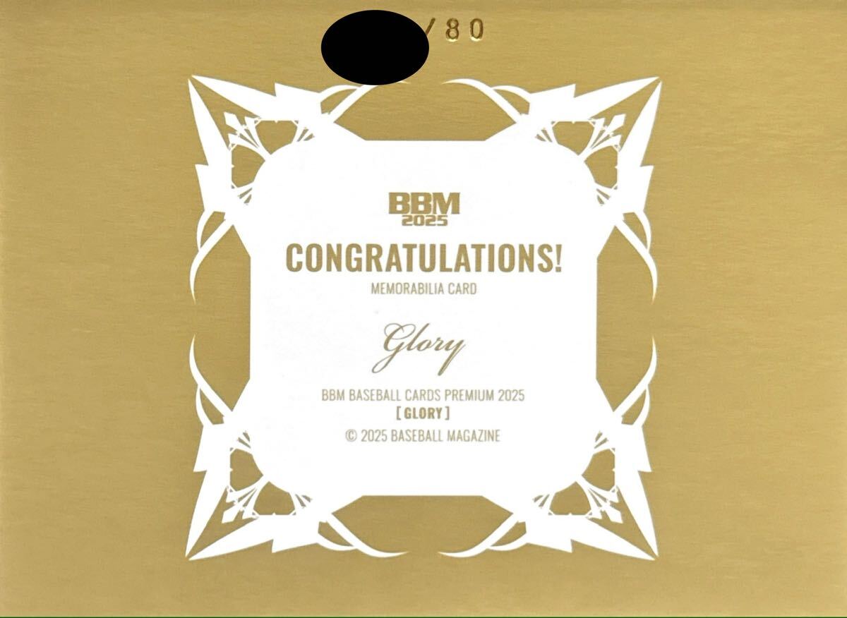 BBM 2025 GLORYに封入された東北楽天 宗山塁選手のスペシャルジャージーカードです。80枚限定品です。