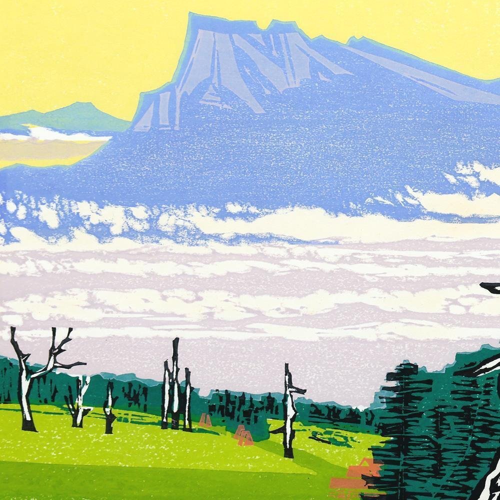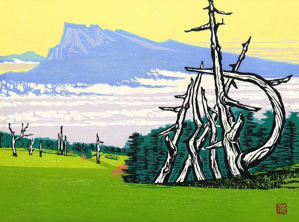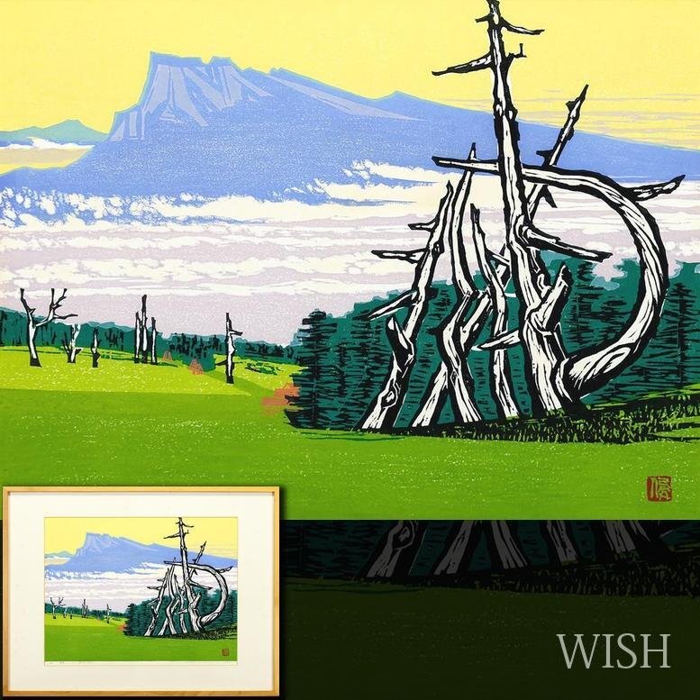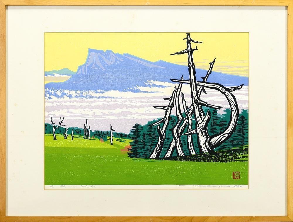 【真作】【WISH】中西俊佳「石鎚山」木版画 6号大 1984年作 直筆サイン   〇版画家 愛媛県立美術館蔵 サンパーク美術館蔵 #25113281