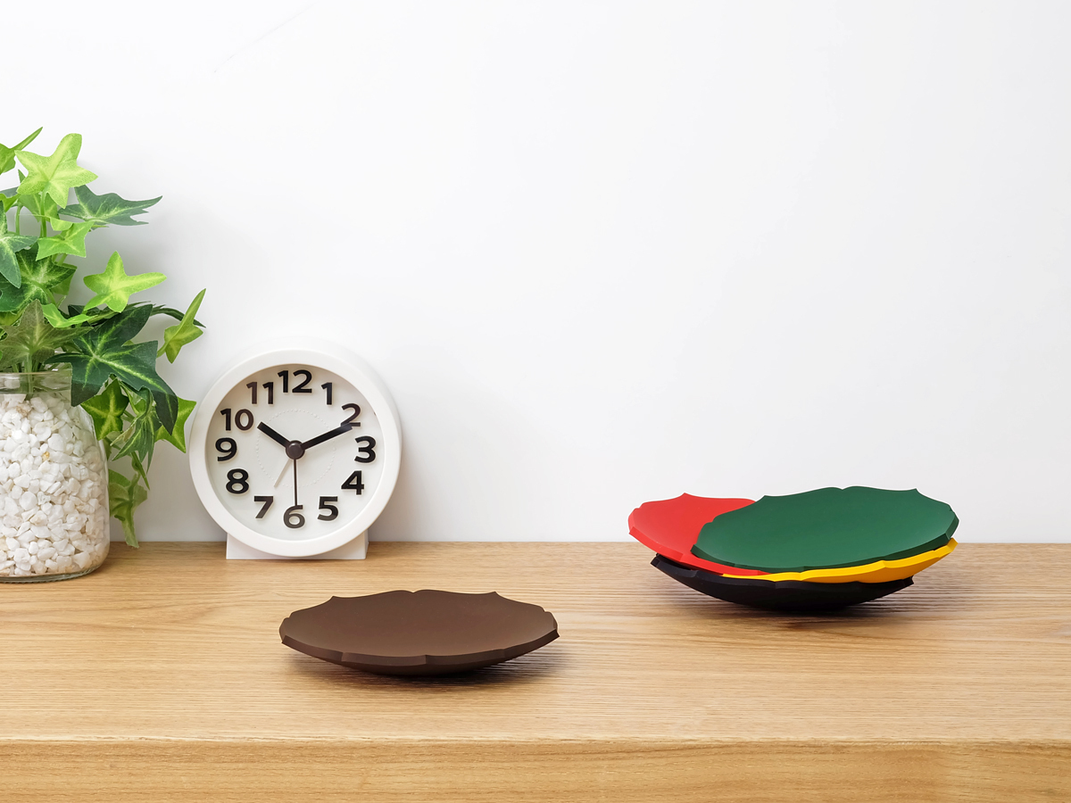 立体的なフォルムだけど実はとても柔らかく、コースターのうえにグラスなどを乗せると接地面がフラットになります。