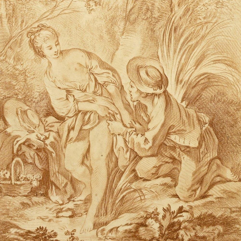 【真作】【WISH】フランソワ・ブーシェ Francois Boucher「La baigneuse surprise」リトグラフ 驚きのバスタイム   #25113311
