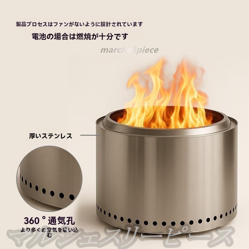 1. 【驚異の二次燃焼技術で煙を大幅軽減】 二重構造により、二次燃焼を実現。薪やペレットから発生する可燃性ガスを効率よく再燃焼させるため、煙が非常に少なく、火力も集中。キャンプ場やご自宅のベランダでも、煙を気にせず快適に焚き火をお楽しみいただけます。従来の焚き火台や薪ストーブとは一線を画すクリーンな燃焼体験をご提供します。