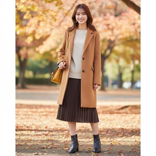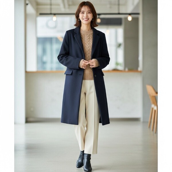 カジュアルシーンからオフィススタイルまで使えるチェスターコート。