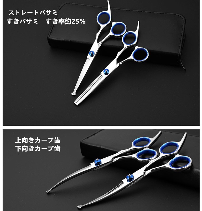 丸い先端 トリミング ハサミ シザー カーブ歯 爪切り 犬 猫 ペット グルーミング カーブバサミ スキバサミ お手入 トリマー ヘアカット