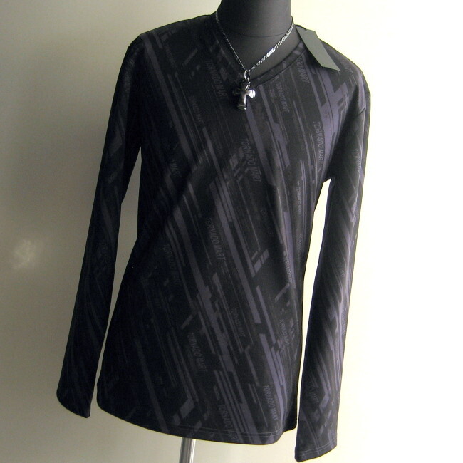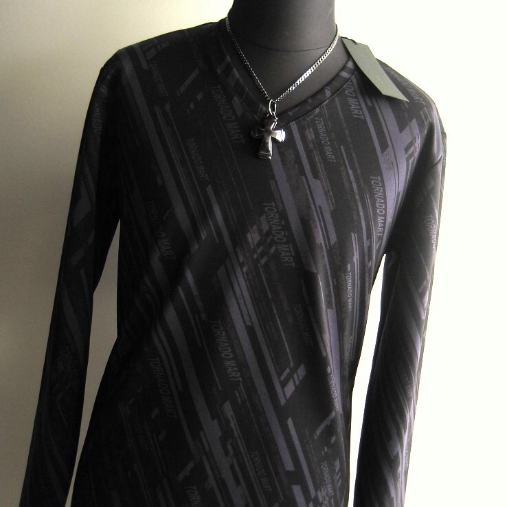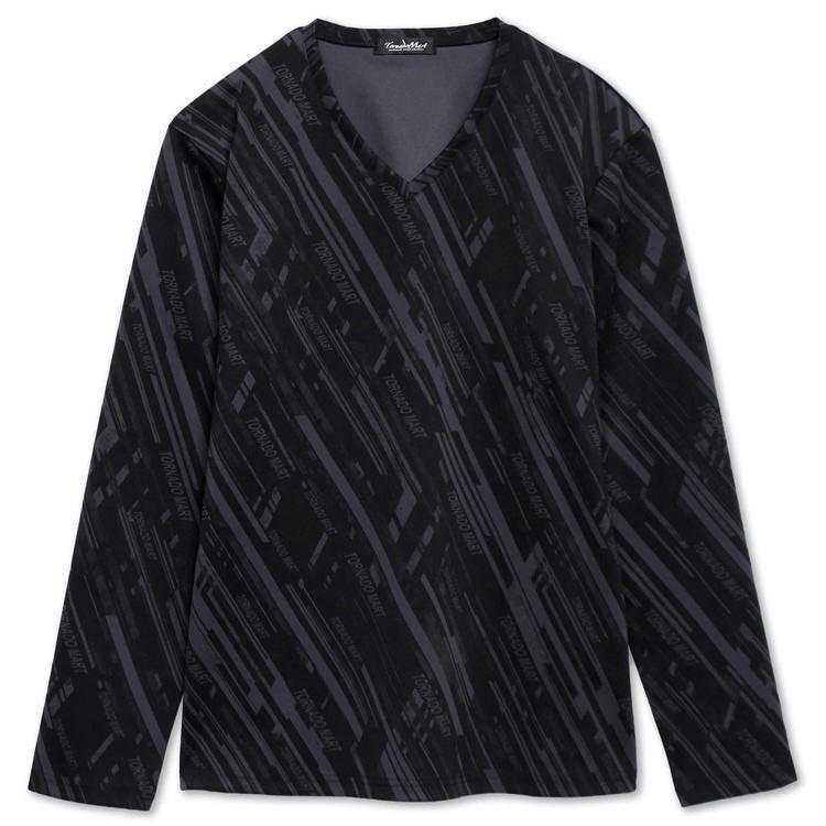 1.4万 新品 L トルネードマート TMロゴストライプVネックカットソー長袖 ブラック 送料無料 サンプル 680