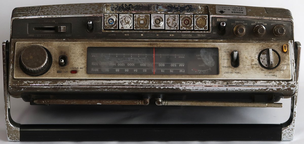 性能はネット上でお調べください。出品は画像の本体のみです。他に必要な物があればご自分でご用意ください。使用品ですので汚れ、擦れや擦り傷があります。メッキ部分に黒ずみなどの汚れあり、エタノールなどで拭き取りはできるのですが、かなりこすらないと拭き取りができませんのでした。ですのできちんと最後まで綺麗にしませんでした。またメッキ部分に大きなドット状の変色が多数あります。アンテナは部分的に折れてなくなっています。付属のケーブルを繋げてテストしました。電源ボタンは操作可能です。通電はされます。BATTメーターは動作しております。FM/AMラジオチューナーと音量ボタンのみ動作確認が取れました。カセットは一切動作しません。これ以外の細かいスイッチや各ジャックの動作はわかりません。電池での動作確認も取っておりません。分かることは以上です。出品前にきちんと基本的な事は問題ないかチェックした上で出品していますが、発送後になにか問題がありましてもサポートは出来ませんし、返品やクレームは一切受け入れられませんのでそれを納得した上で御入札下さい。