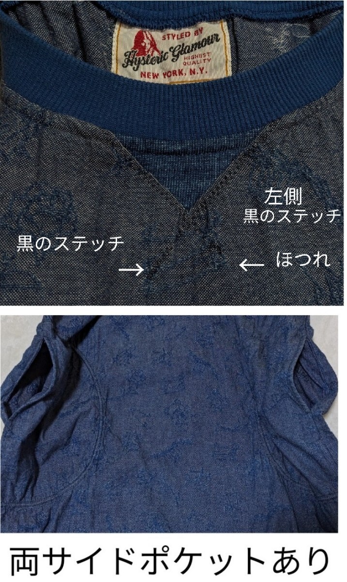 ※8枚目の写真にあるように、首元の黒いステッチにほつれがあります。