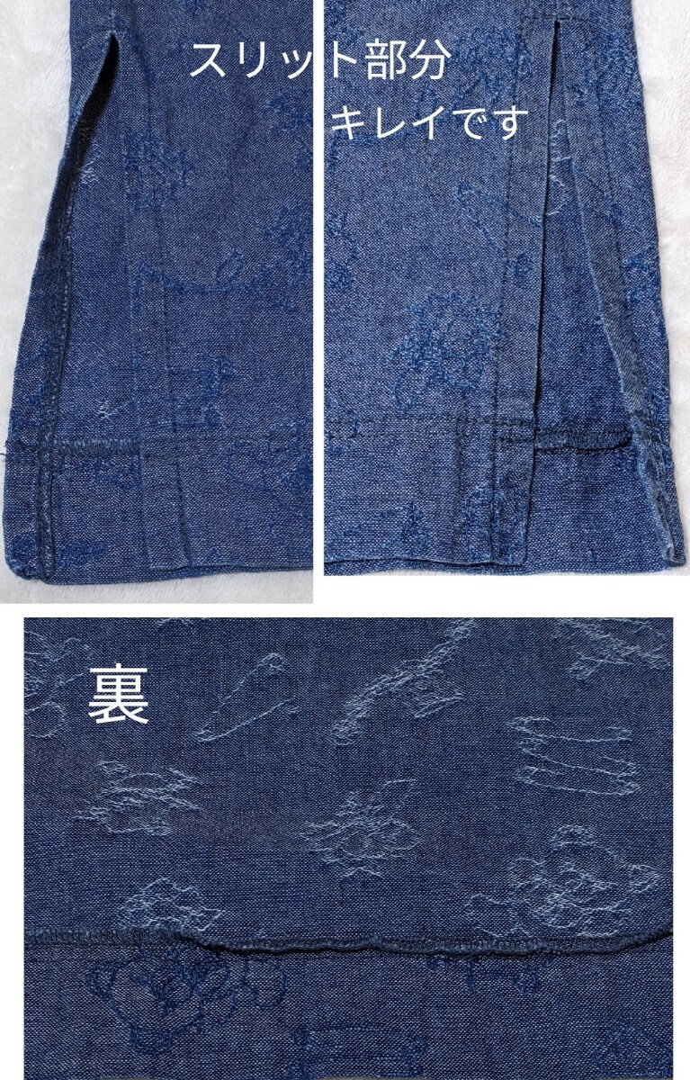 タテに20番手のインディゴ糸、ヨコに30番手の綿糸を使用したインディゴのシャンブレーに、刺繍風のオリジナル柄をジャカードで表現しました。