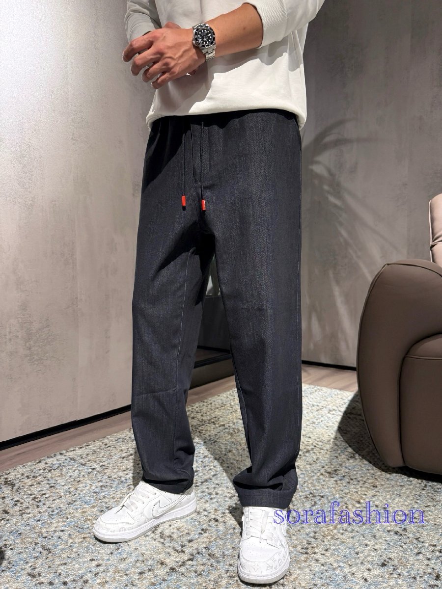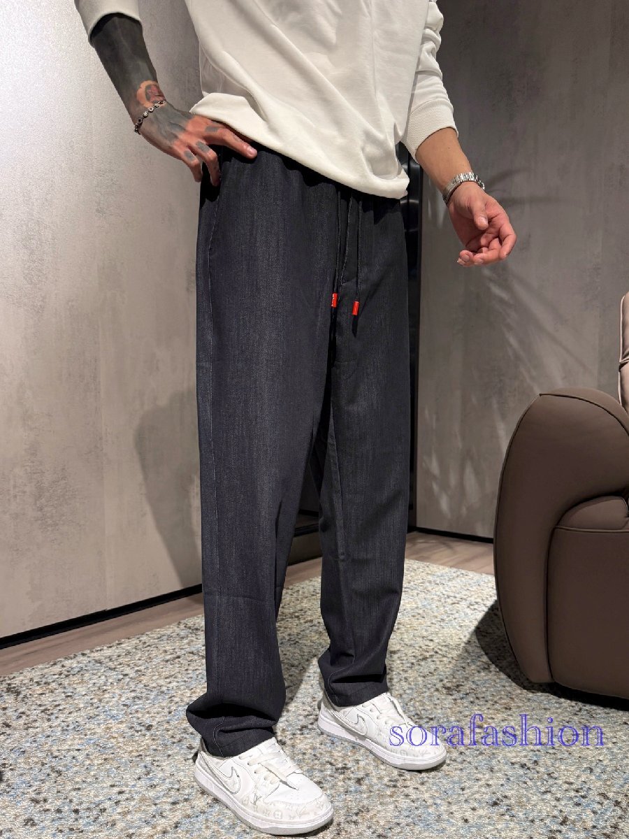 KITON キトン メンズデニムパンツ ジーンズ ロングパンツ ブラック 2XLサイズ ボトムス ストレート 長ズボン カジュアル ゴムウエスト