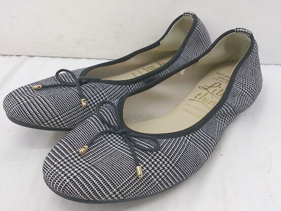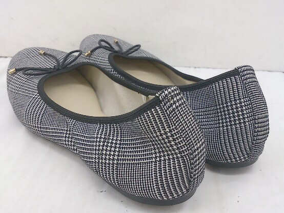 ◇ little things studio CLIP ラウンドトゥ グレンチェック バレエシューズ サイズM ブラック グレー レディース