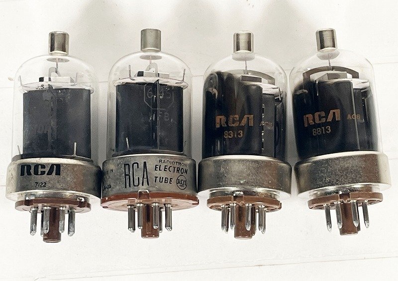 RCA 6146 4本です。 チューブテスターでチェック済品。 定格35に対して、58、50、52、50です。 |