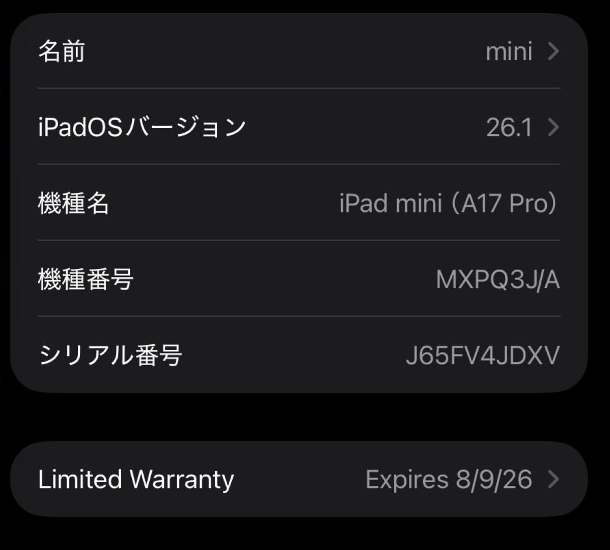 こちらの iPad mini (A17 Pro) 128GB Wi-Fi + Cellular(SIMフリー) は、とても綺麗な状態の超美品 です。