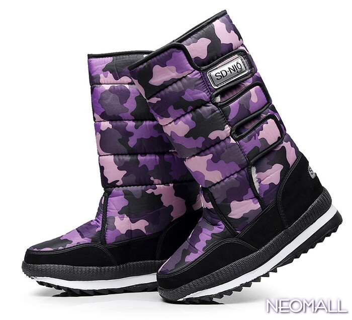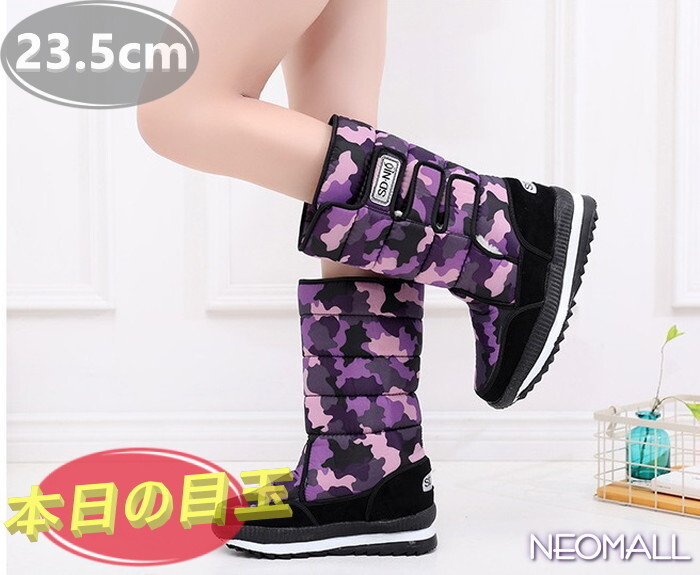 レディース スノーシューズ 【867】 23.5cm 迷彩パープル ムートンブーツ スニーカー ウィンターブーツ 裏起毛 防水 防寒 防滑 冬用靴 綿靴