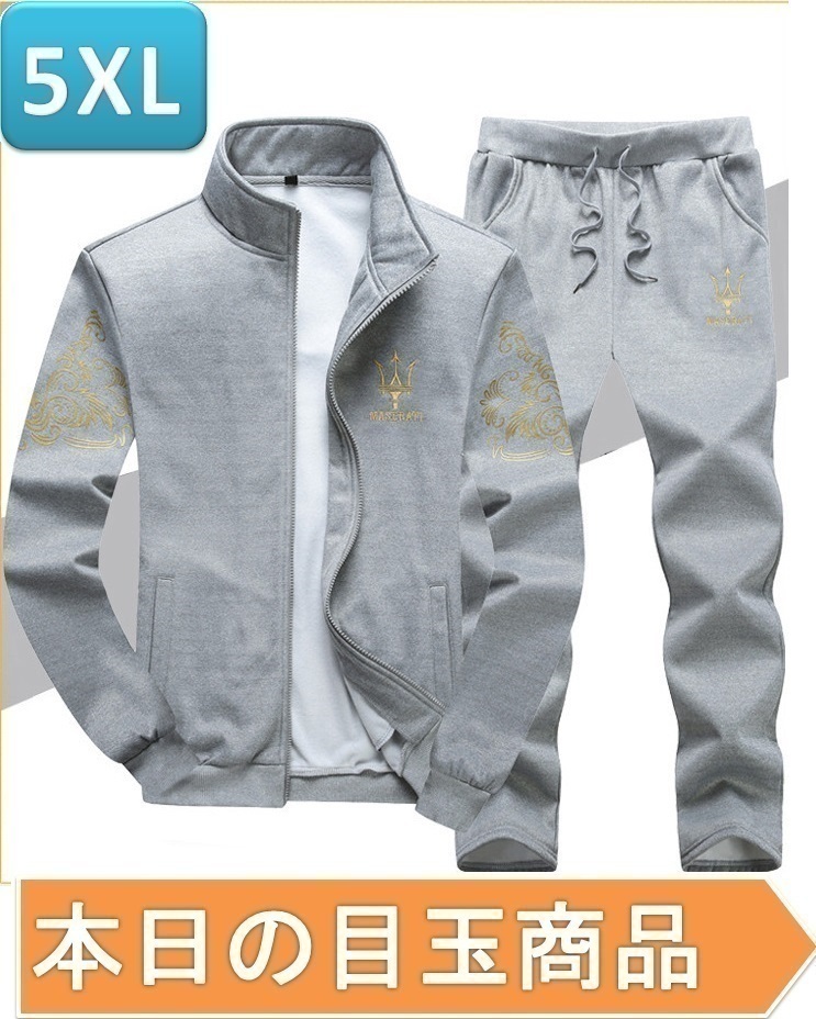 【今日の目玉】メンズセットアップ 上下セット ☆196 グレー 5XLサイズ ジャージ スウェット お兄系 部屋着 おしゃれ