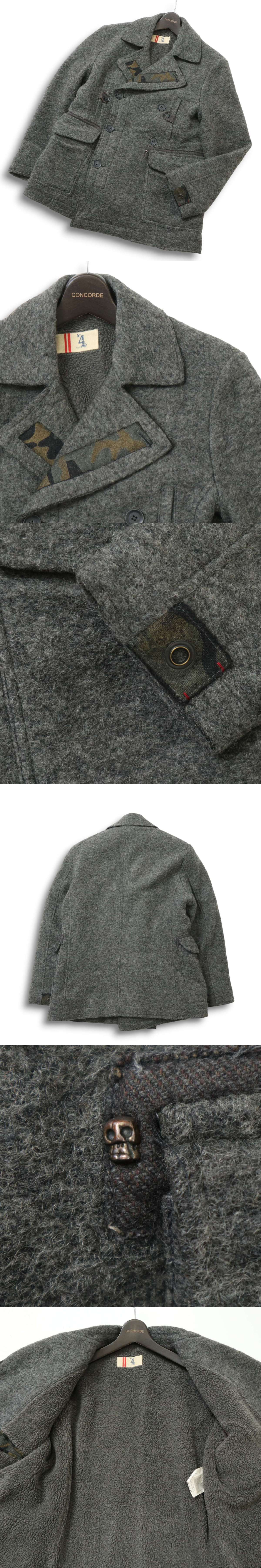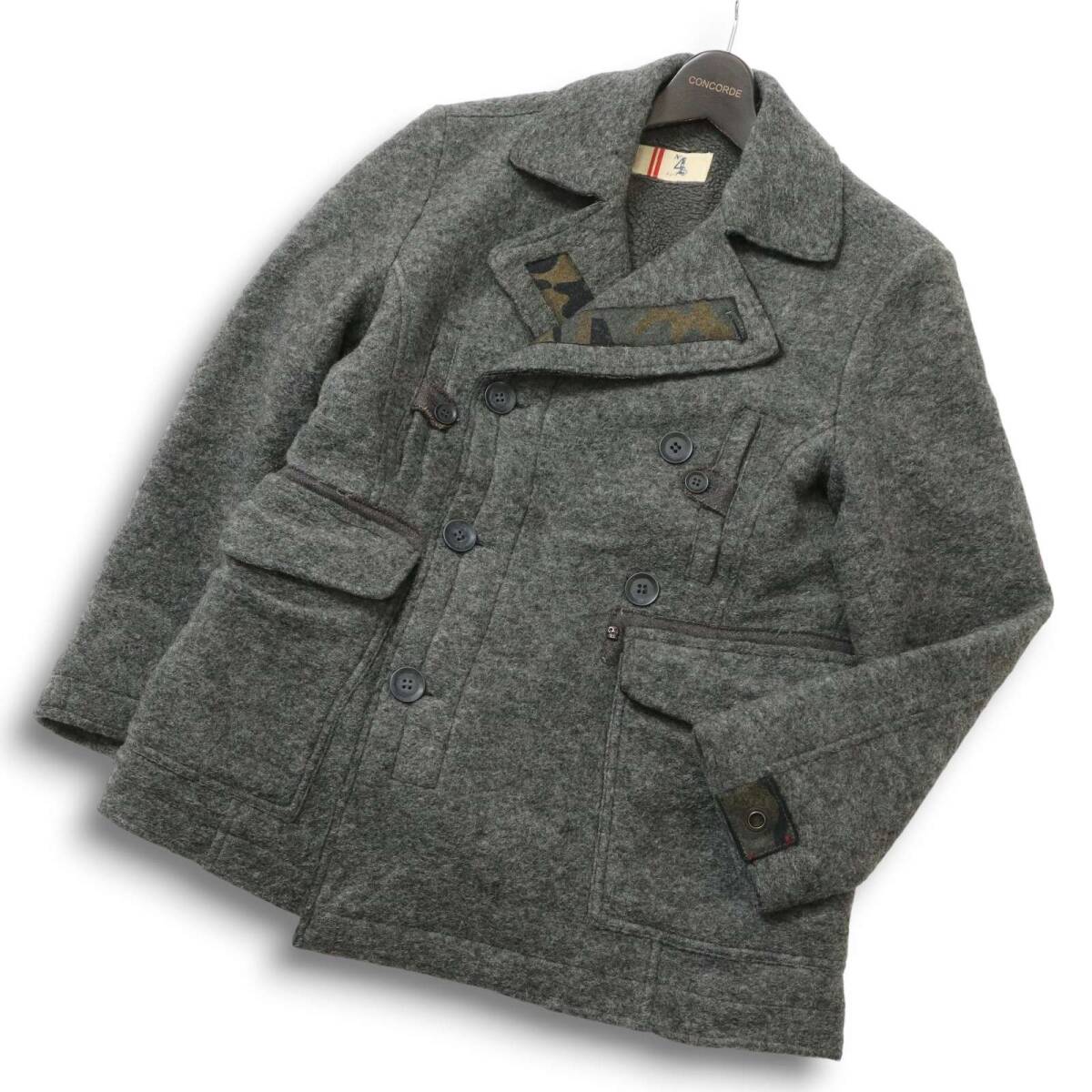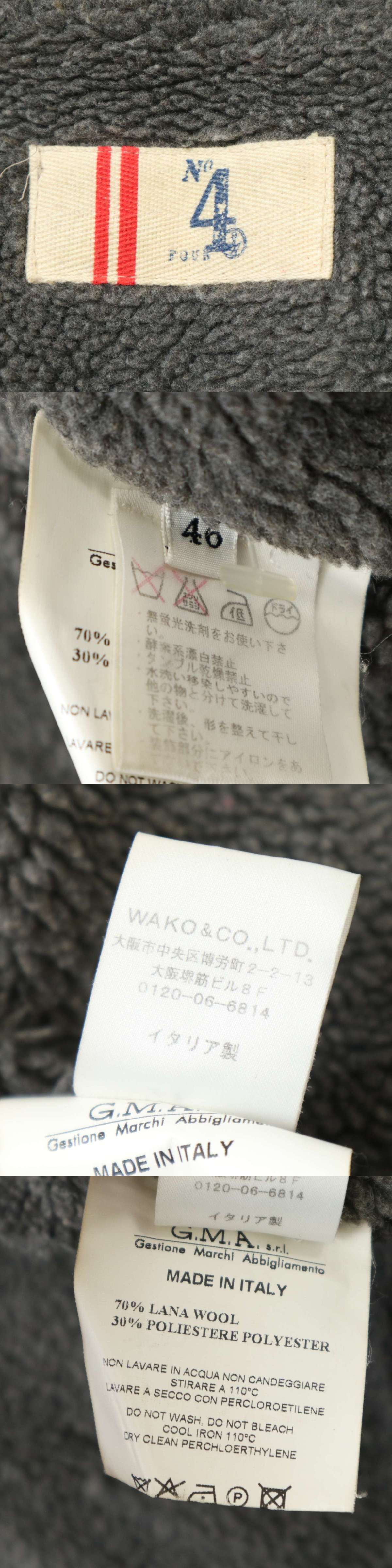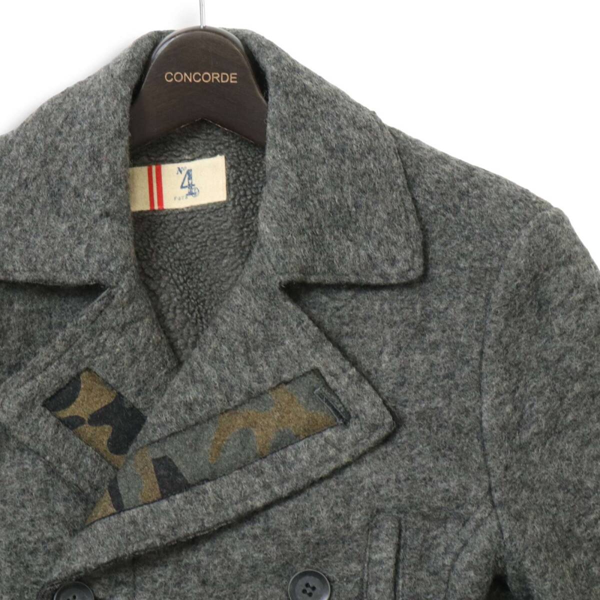 イタリア製★ No.4 FOUR ナンバーフォー 秋冬 裏ボア★ ウール Pコート ピーコート Sz.46 メンズ 灰