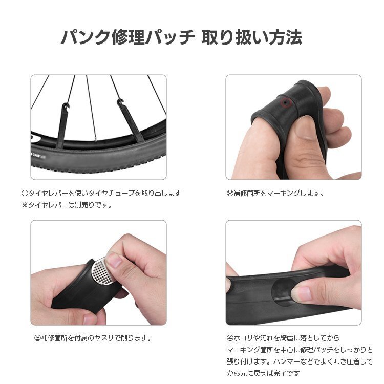 ※出品物は修理用パッチのみとなり、付属品記載の内容以外のその他の物は付属しません※すべてのタイヤ・チューブへの圧着、機能の保証は御座いません、材質により剥がれやすい場合があります。