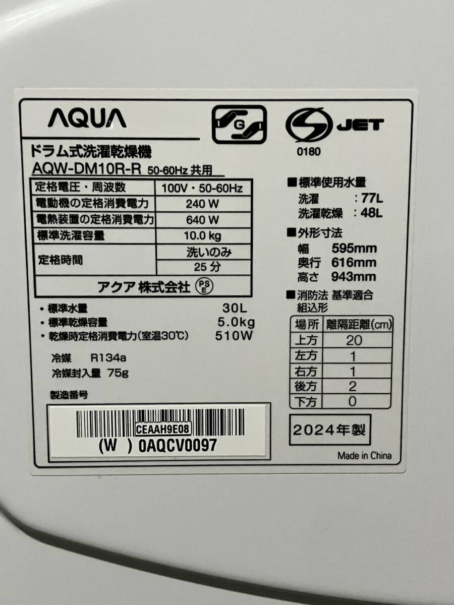 | 美品☆/AQUA/アクア/ドラム式洗濯乾燥機/洗濯10kg/乾燥5kg/右開き/2024年製/AQW-DM10R-R/1127f4 | ||||||||||||||||||||
