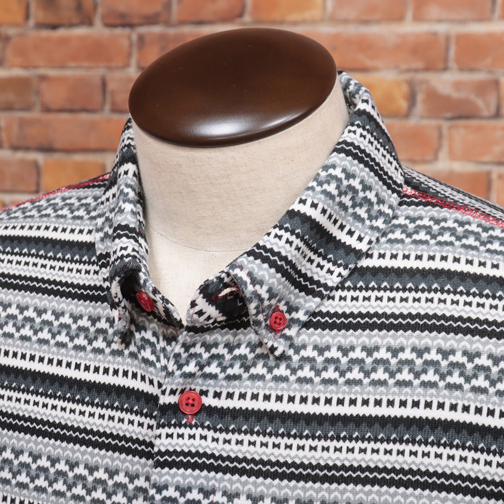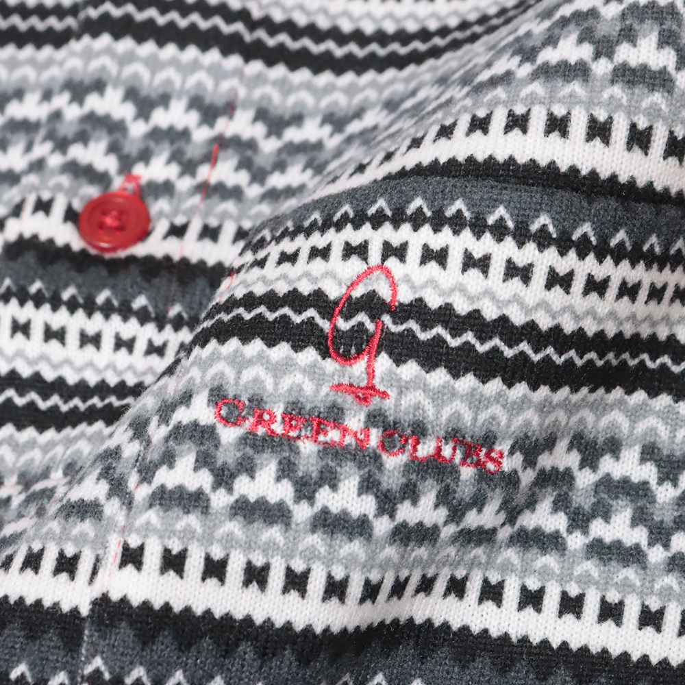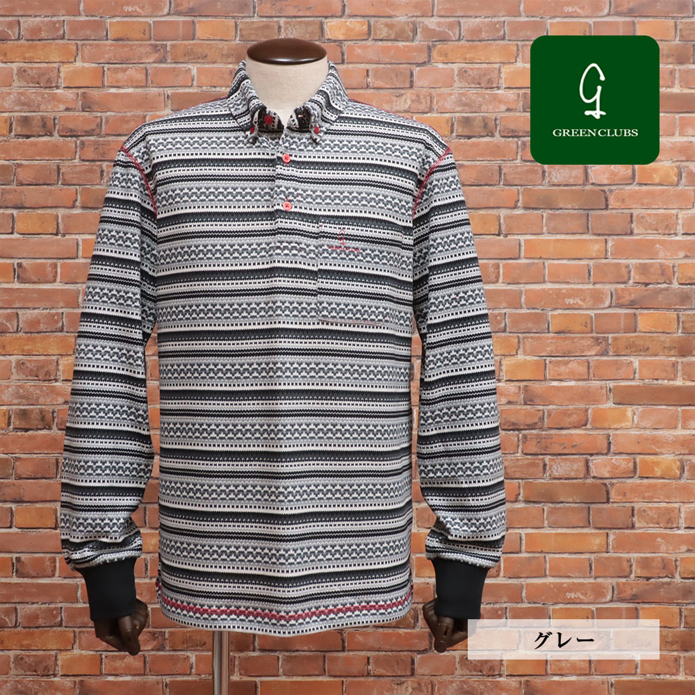 1円/秋冬/GREENCLUBS/3(M)サイズ/長袖ポロシャツ ネイティブ柄 ふんわり微起毛 グリーンクラブ 新品/グレー/mb373/