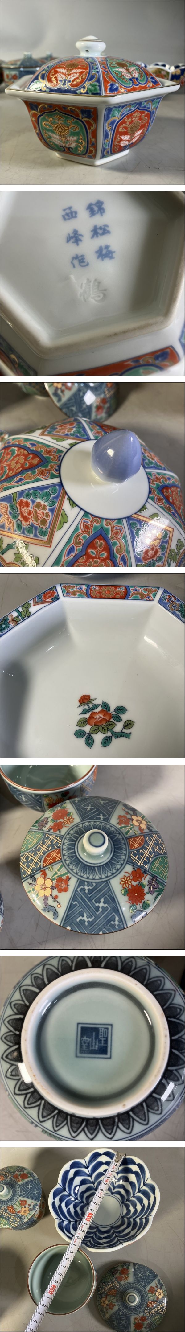 | L2-403 有田焼 錦松梅 西峰作 他色々まとめ 小鉢 蓋付き/茶碗/湯のみ5客/聖山窯 | ||