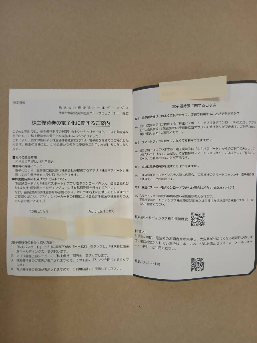 極楽湯 株主優待券 6枚セットの価格で入札御願い致します。