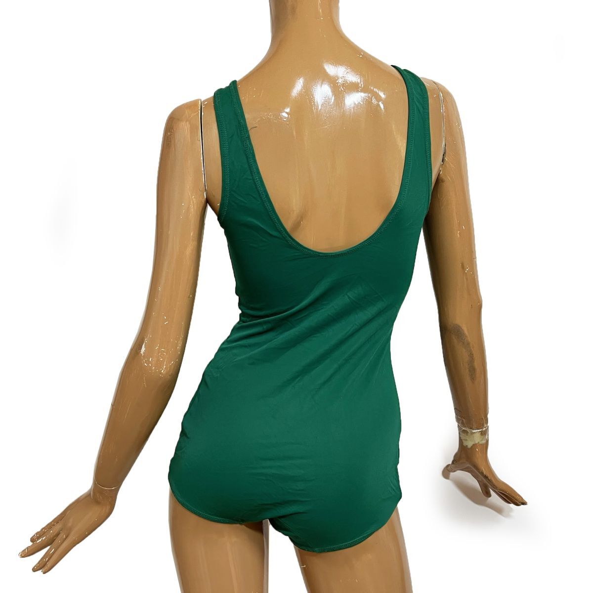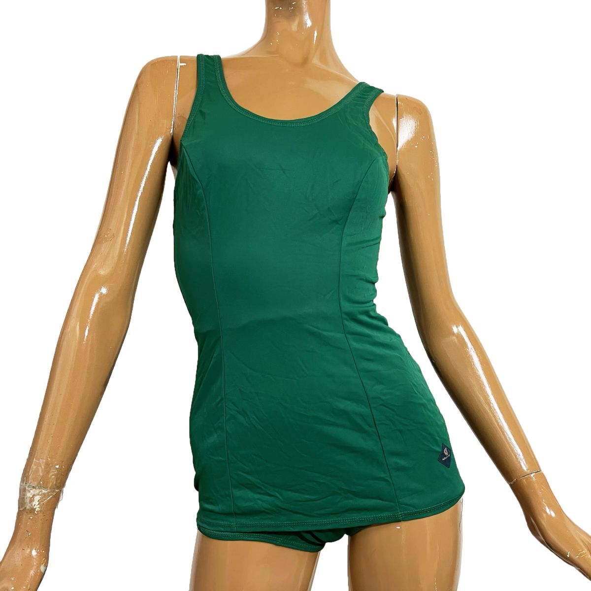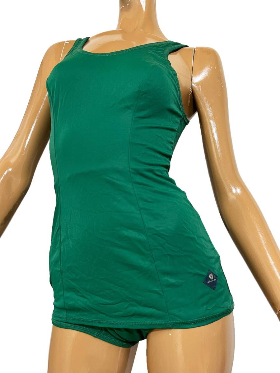 17アシックスJelenk女子競泳水着(M)★レトロタイプ★前スカート★光沢グリーン★大きいサイズ 男性も