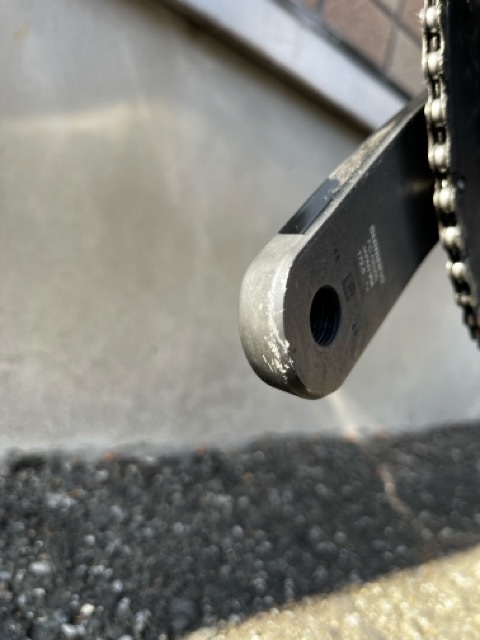 転倒・落車はありませんが、立てかけた際に当たったクランク先端の傷はあります。