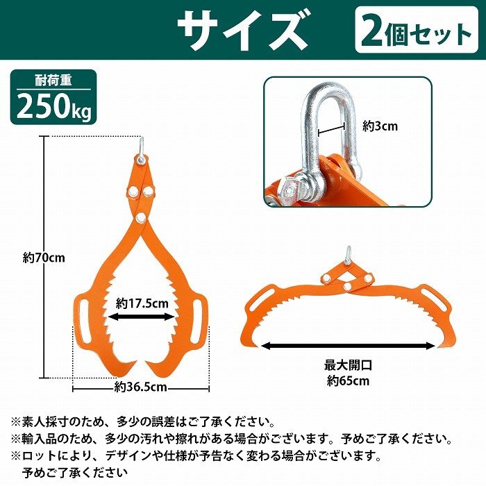 『2本 65cm ハンドル付』丸太 トング 木材 原木 リフティング トング 伐採 集材 林業 薪 薪割 移動 ハンド リフト リフター