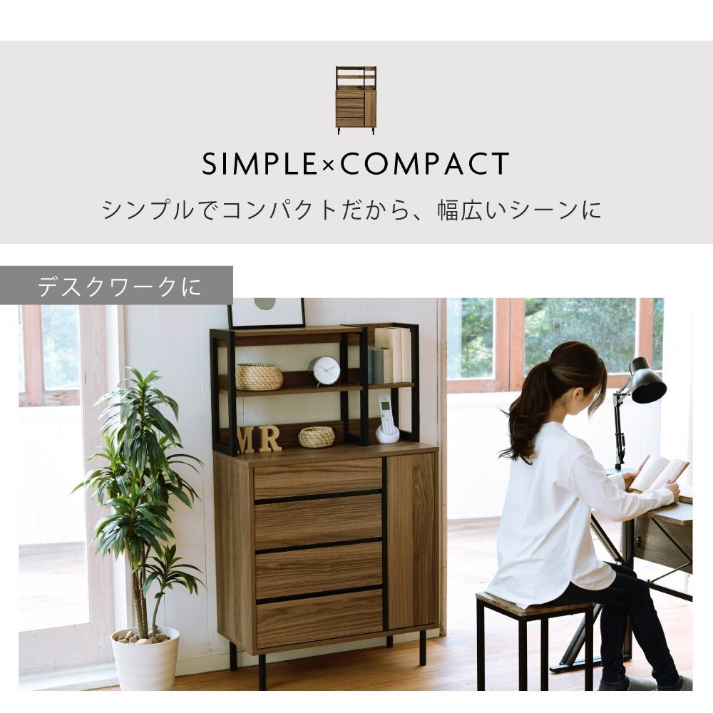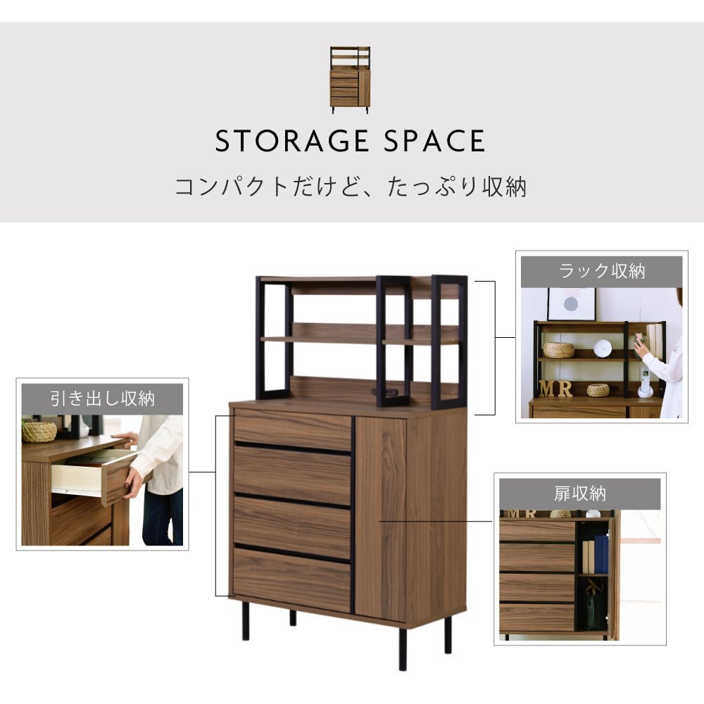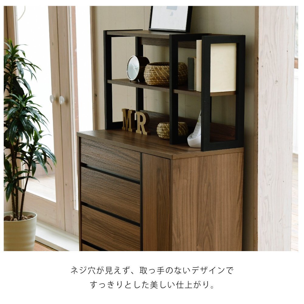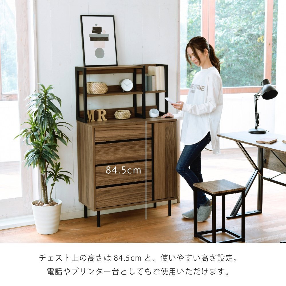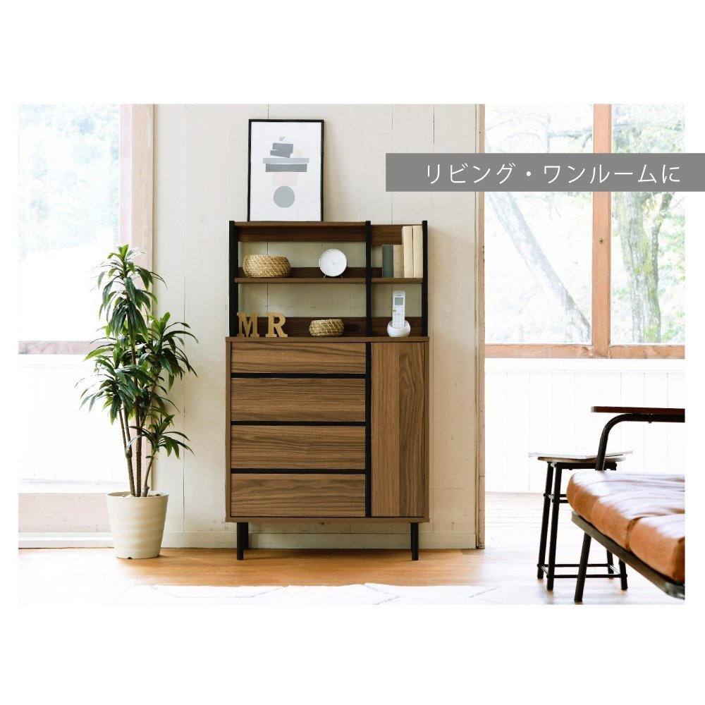 | 落ち着いた木目調のブラウンとブラックスチールの組み合わせがモダンな印象を与える、 北欧テイストシリーズ“Fresser”。 4段のチェストと扉収納にオープンラックが付いたワイドチェストラック。 シンプルなデザインながら、飾るもので個性を演出できます。 |