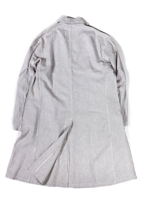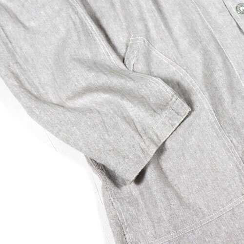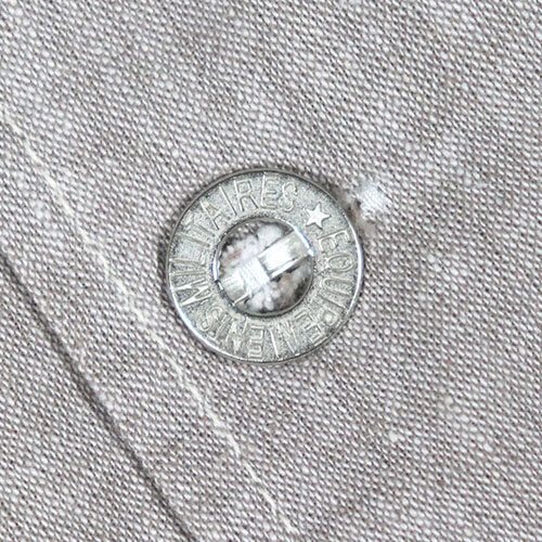 「1930年代から40年代にかけてフランスのミリタリーやワークでよく見られる小さめの襟と大型のパッチポケットが特徴のコートをサンプリングしたミリタリーコートです。素材はリネンコットンの混紡を採用いたしました。リネンコットンは独特の軽やかさや風通しの良さと、肌触りの良さがあり、長いシーズン着用出来ます。着用と洗濯を繰り返す事によりリネン特有のビンテージ感のある風合いが楽しめます。 ボタンは1800年代後半から1950年代の長きにわたりフランス軍の様々な衣類やバッグに使用されていた"MILITAIRES EQUIPMENTS"と刻印されたアルミボタンを忠実に復刻しています。」 ●サイズ:1(レディースフリー)/ 2(メンズM)/ 3(メンズL)に相当。 サイズ2は着丈107センチほど、身幅が63センチほど、肩幅52cm、袖は60センチ程度です。 ●素材:リネン55% コットン45% 沖縄離島を除く全国元払い500円でお送りいたします。落札価格にプラスでお願いします。