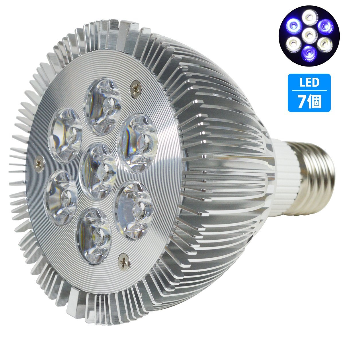 【新品即納】 水槽 用 スポット ライト 14W 電球 7LED 白4/青3灯 口金 E26 アクアリウム 電球 照明 植物育成 水草 サンゴ 熱帯魚 観賞魚