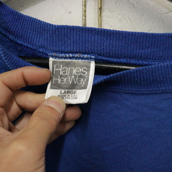 商品名 M996 90sビンテージ Hanes ヘインズ スウェット USA製■1990年代製 表記Lサイズ レディース ブルー 無地 トレーナー アメカジ 古着 古着卸