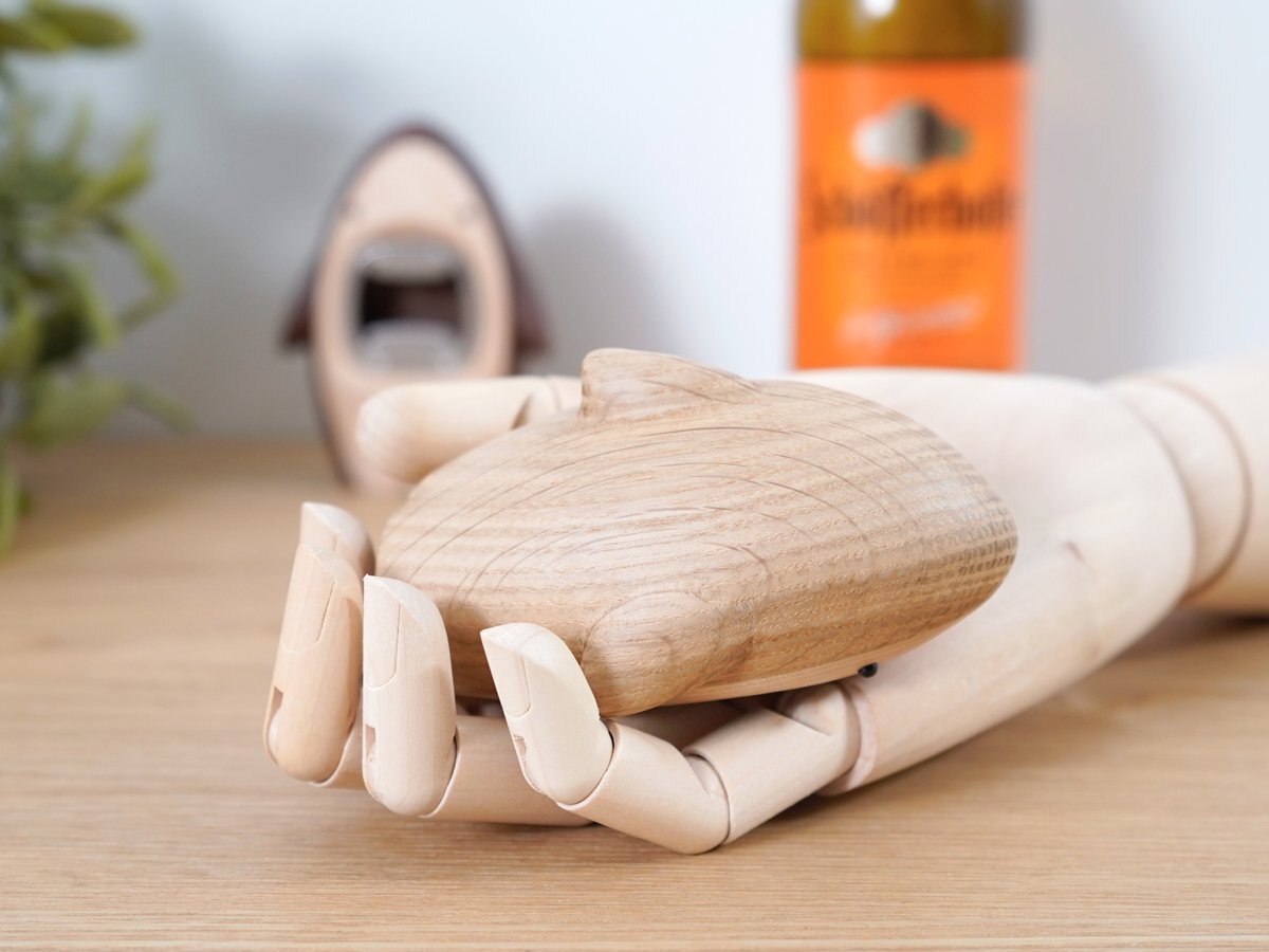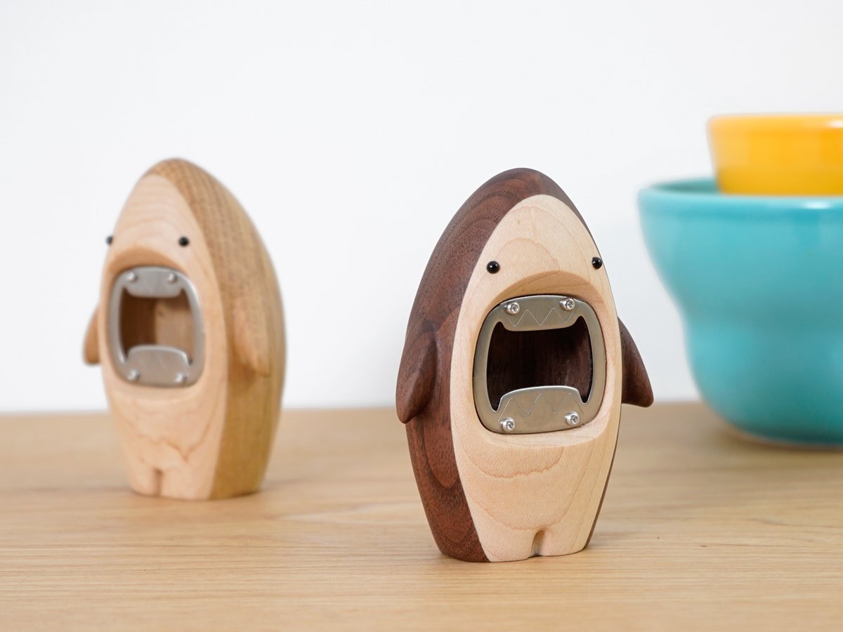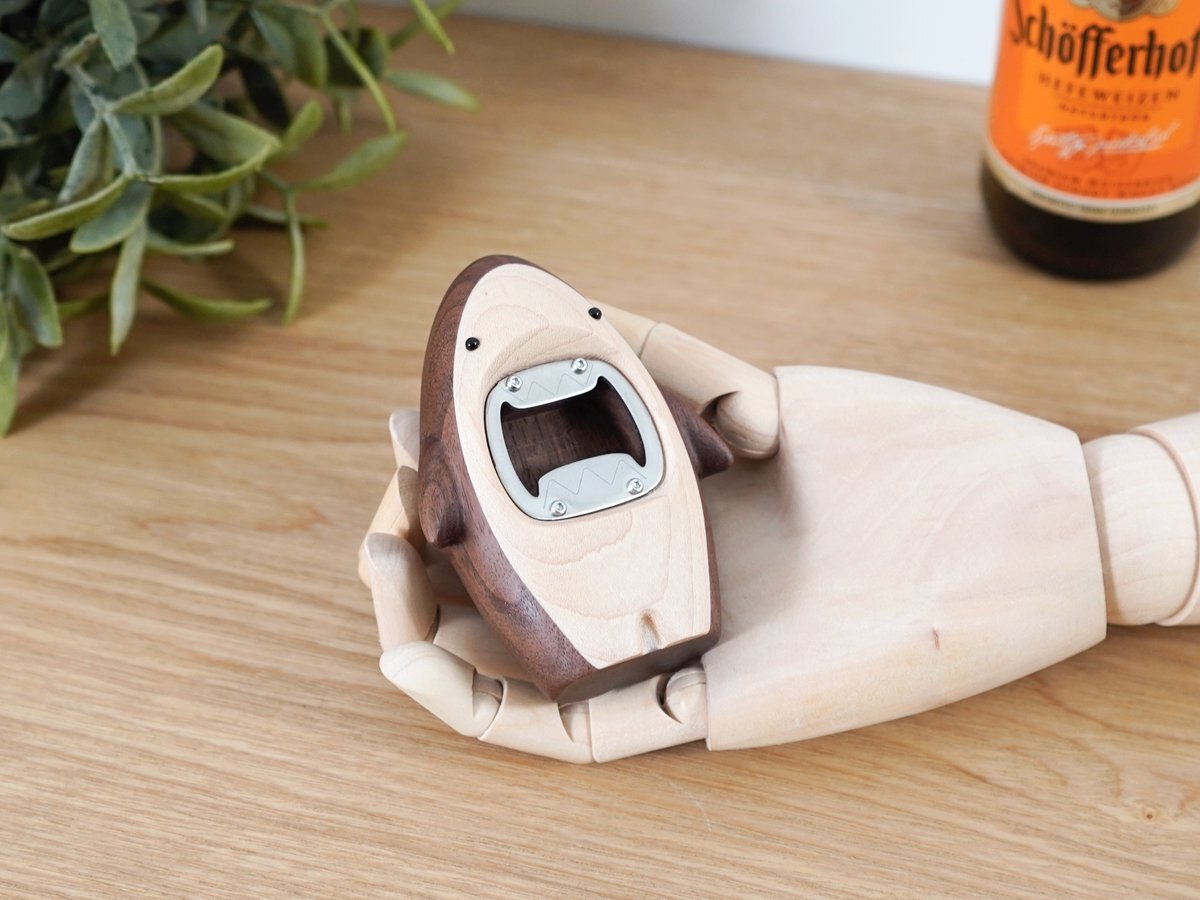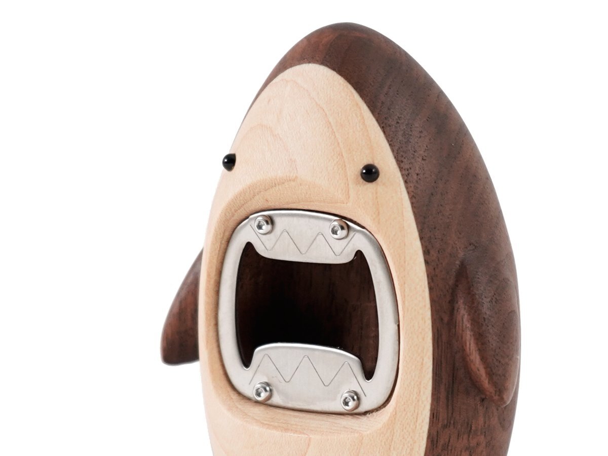 商品説明 サメをモチーフとした、木製ボトルオープナー(栓抜き)です。