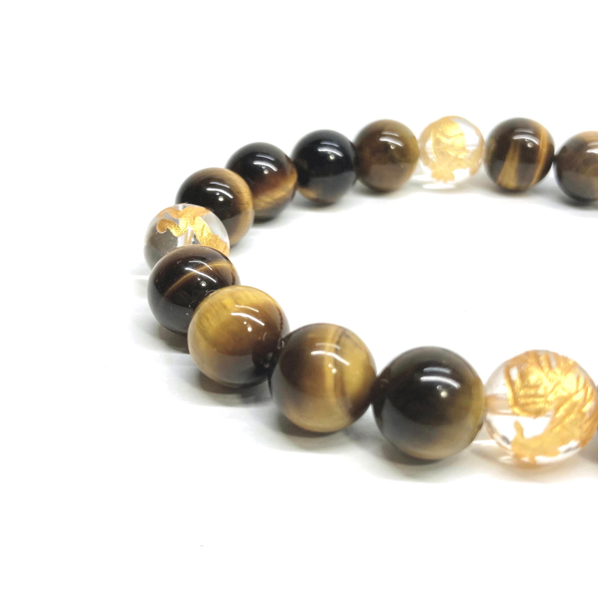 10mm 四神獣金彫水晶×タイガーアイ パワーストーン ブレスレット天然石 運気上昇 開運 金運 恋愛運 青龍 白虎 玄武 朱雀 ☆