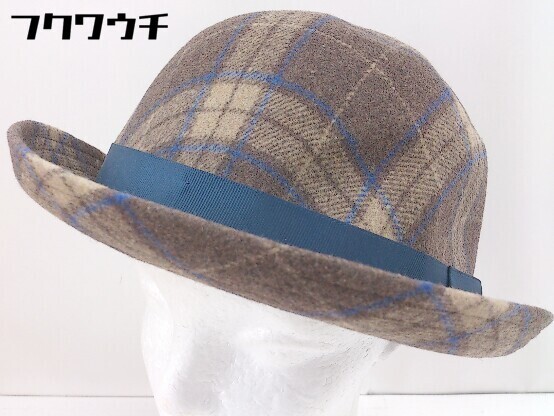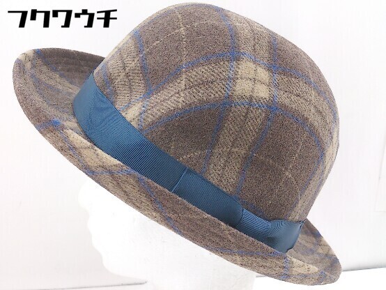 ◇ BEAMS HEART ビームス ハート リボン チェック ハット 帽子 ブラウン ベージュ ネイビー 57cm レディース