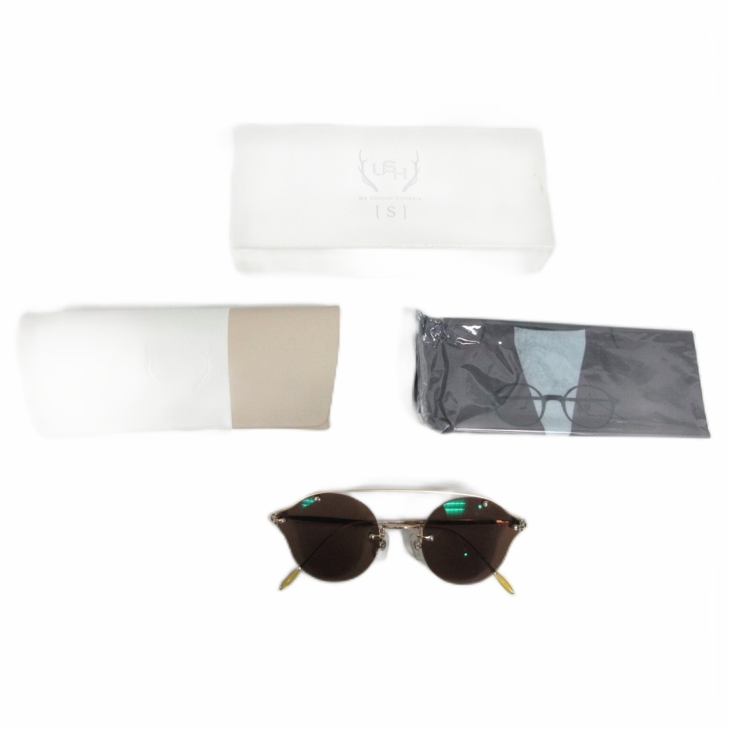 ユウイチトヤマ USH by YUICHI TOYAMA × ラマルク LAMARCK 美品 コラボ サングラス アイウェア 48?23 145 茶 ブラウン US-008 IBO86