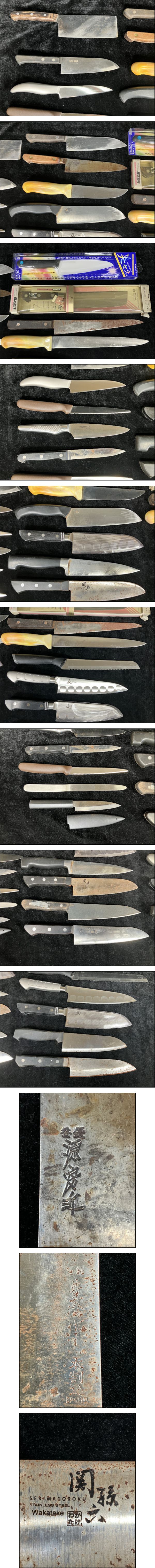 | 商品説明 | ★最後までお読みいただき、ご理解の上でのご入札をよろしくお願いいたします。 【FM005】 ★包丁まとめ 源房近 豊澄作 関孫六 等 三徳包丁 菜切り包丁 セラミック刃包丁 クッキング 【商品状態】 ひとつずつ検品・梱包は行っておりません。 まとめ品の中にジャンク品を含む可能性があります、ご了承ください。 多数商品がある場合、傷や汚れを写真に載せきれない可能性もございます。 あらかじめご理解・ご了承の上入札をお願いいたします。 また、細かくクリーニングしている訳ではありませんので 状態を極度に気にされる方、神経質な方は入札をお控えください。 ■写真に写るもののみの販売となります。 写真にないものは付属いたしません。 画像をご確認の上、商品の状態に納得して頂いた方のみ入札をお願いいたします。 【取引ナビの対応日時】 ■平日9:00-17:00となります。※土日祝日は休業 【発送方法】 発送は佐川急便よりお送りいたします。 原則ご入金後、発送まで3日~7日お時間を頂いております。落札商品の量によって発送までのお時間が前後してしまう可能性があります。商品をお急ぎの方はご注意ください。 ※発送元地域が異なる商品の同梱はできません。 また土日祝日はヤフオクの取引全般をお休みしておりますので発送/連絡はできません。いつ頃発送するのか等の催促はおやめください。 ※沖縄・離島の方は【中継料】が発生し送料が高額になります為、佐川着払いとなります。 ※中継料が発生した場合、追加で中継料分の不足送料を請求させて頂きます。必ずご自身のお住まいをご確認頂いてから入金をお願い致します。 【直接引き取り】 引き取り場所は東京都八王子市になります。 詳しいご案内場所は落札後、取引ナビにてご連絡いたします。 受付時間:平日10-17時 (12-13時を除く) 商品の保管期間は支払い後、1週間(7日間)とさせていただきます。 直接引き取りをご希望される場合は、以下の通りお手続きをお願いいたします。 お取引の際は、「単品取引」を選択してください。 送料の選択では、必ず「0円(無料)」をご指定ください。 【重要】 システムの都合上、複数ご購入の場合でも「まとめて取引」は選択されないようお願い申し上げます。 ご理解とご協力のほど、よろしくお願いいたします。 ■手順 ① 取引情報の入力 ② yahoo!かんたん決済で支払うをクリック ③ 配送方法を直接引き取り0円を選択し決済を行ってください。 ④ 取引メッセージに 直接引き取り希望と、希望日、希望時間帯をお知らせください。 後程、ご案内の通知をいたします。 取り置き1週間となります、取引ナビにてご連絡お願いします。 【注意事項】 ■発送連絡と同時に評価も入れております。評価不要の方はご落札時にメッセージでお知らせください。 ■商品到着後、破損があった場合は配送業者へ一度ご連絡をお願い致します。 ■発送方法の変更はお受けできません、また送料に納得がいかないままの入札はご遠慮ください。 ■商品到着後7日以上経ってからの返品・返金は対応出来ません。品物が到着次第すぐに商品の状態をご確認ください。 ★他にも沢山の商品を出品しております。 ご興味のある方は、他の商品も是非ご覧下さい。