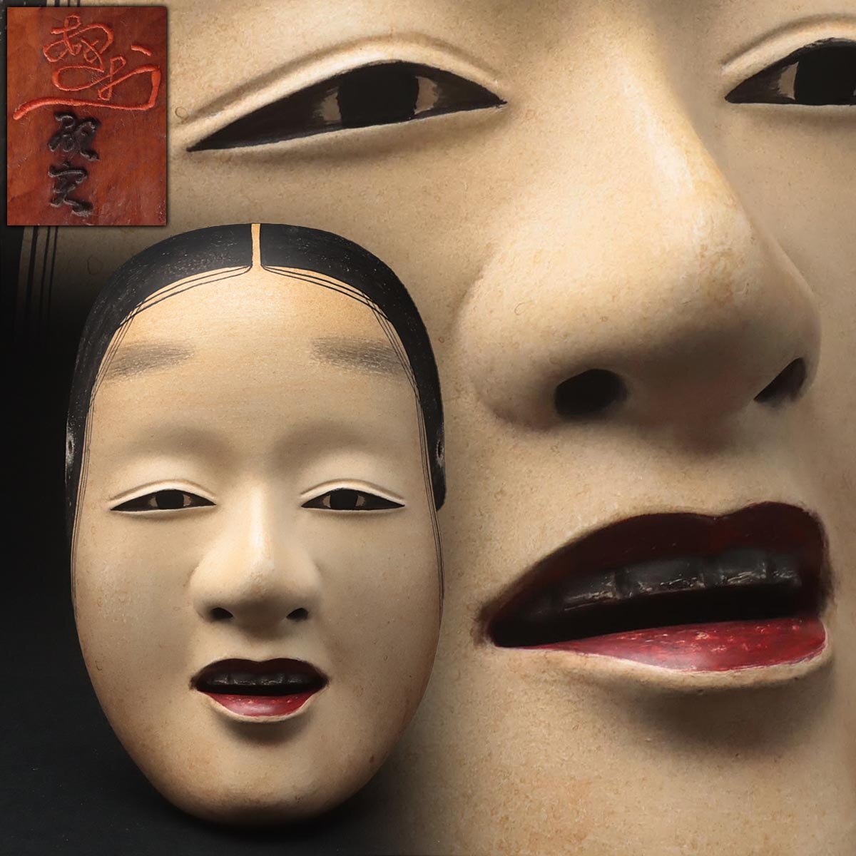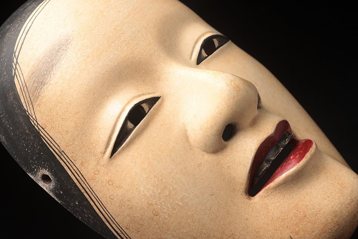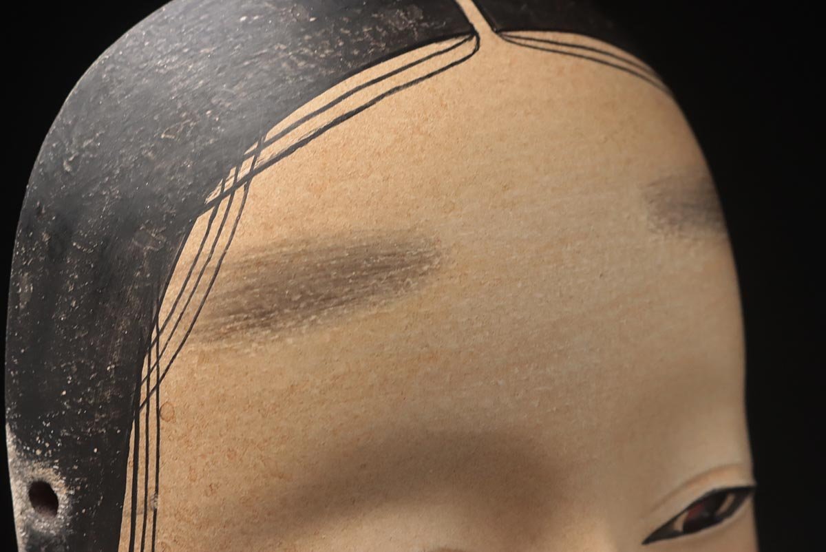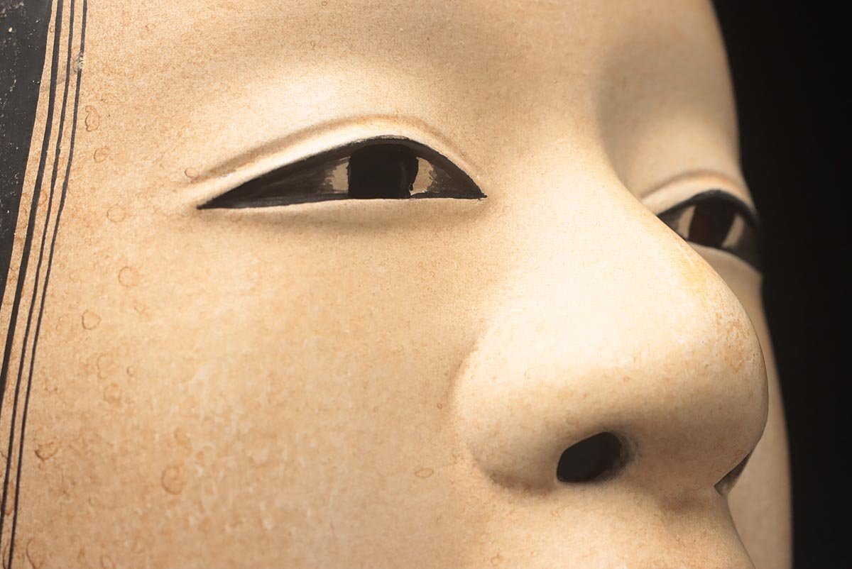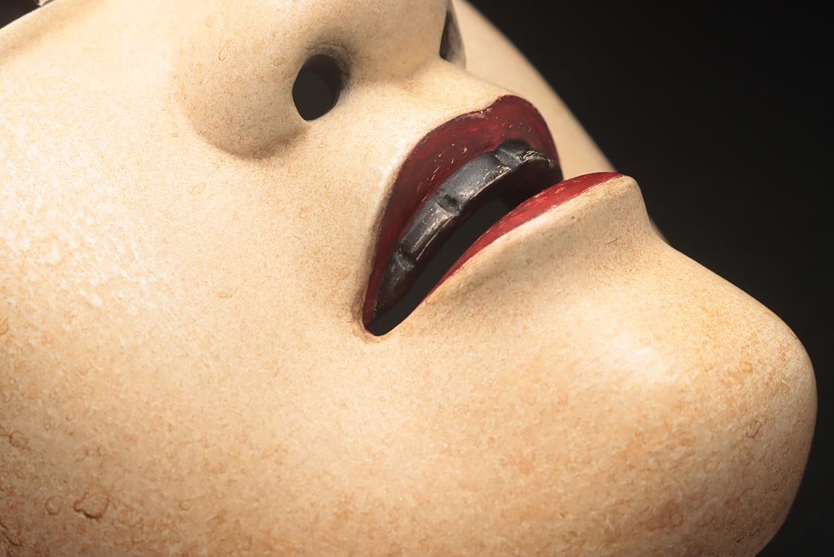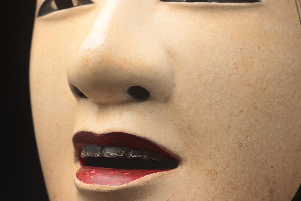 | ◆ 【能面師 孤實 作】木彫彩色能面「若女」縦21cm・狂言面 雅楽 能楽 伝統芸能 東洋彫刻 日本美術 伝統古美術 ◆