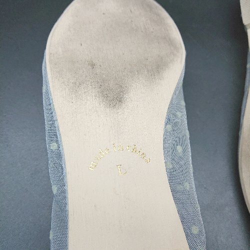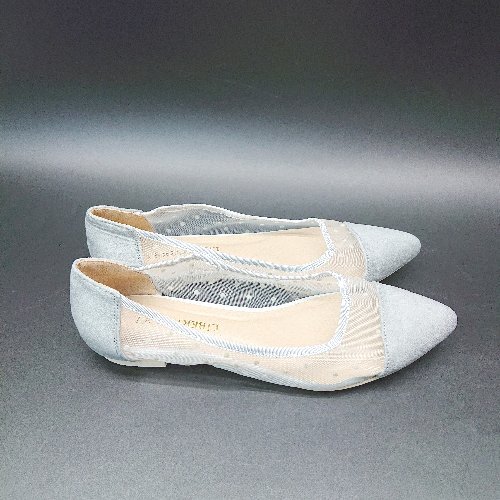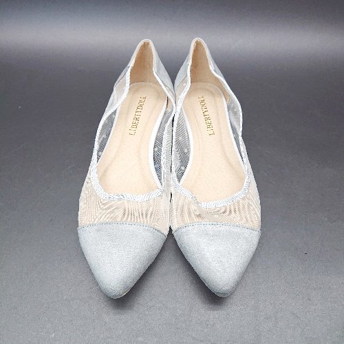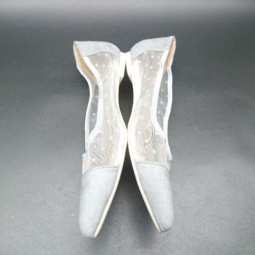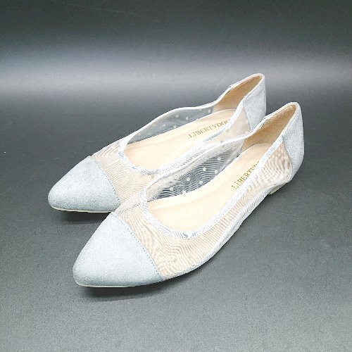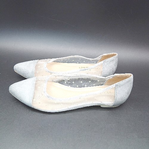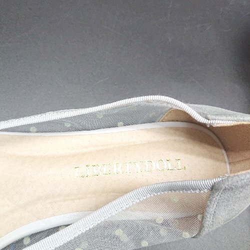 ◇ LIBERTYDOLL ドット柄 メッシュ スエード シアー ポインテッドトゥ 上品 パンプス サイズL グレー レディース E