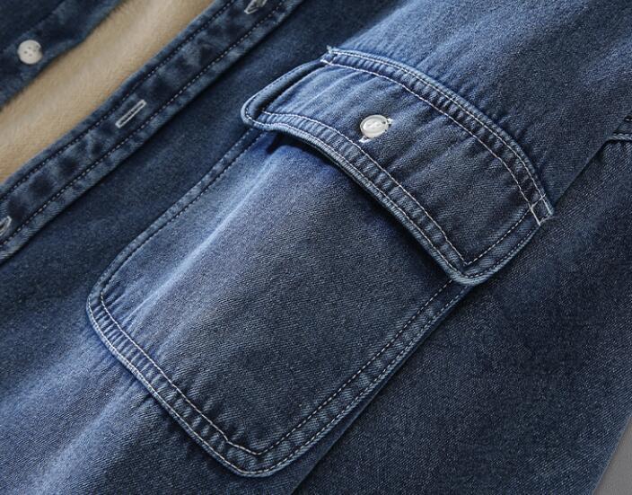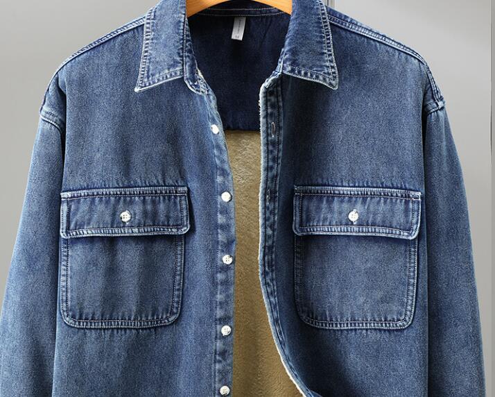 上質デニムシャツ メンズ 内側フリース 裏ボア暖かい 長袖 トップス デニムジャケット ブルゾン ブルー/XXLサイズ