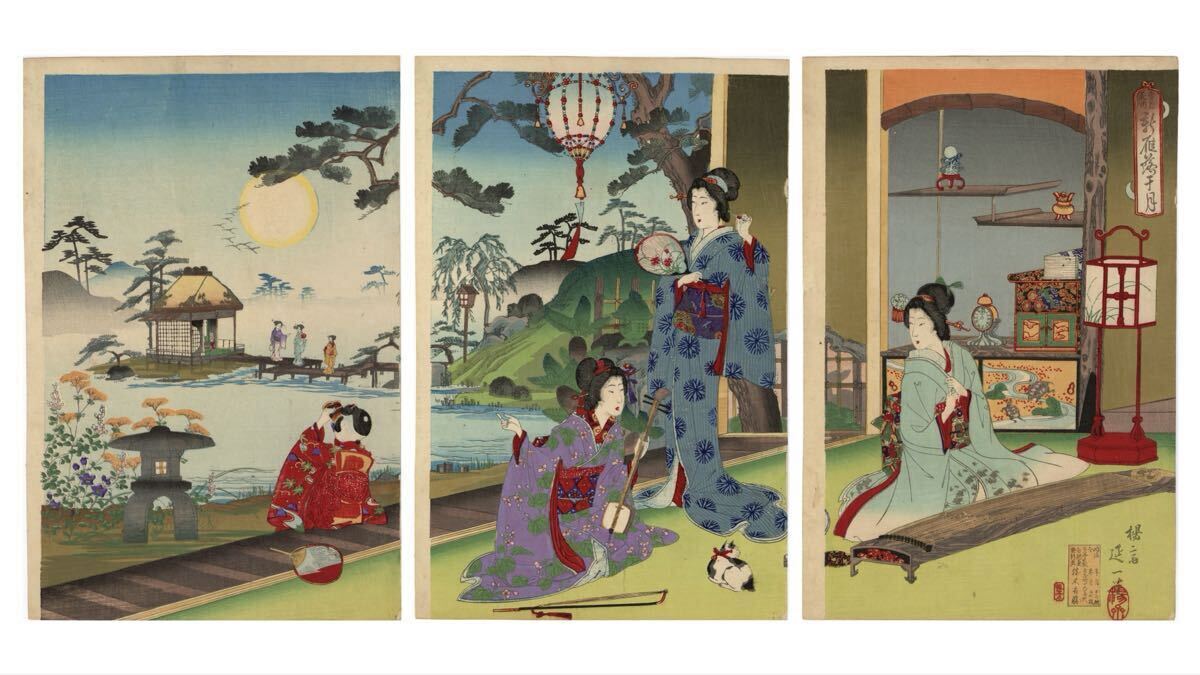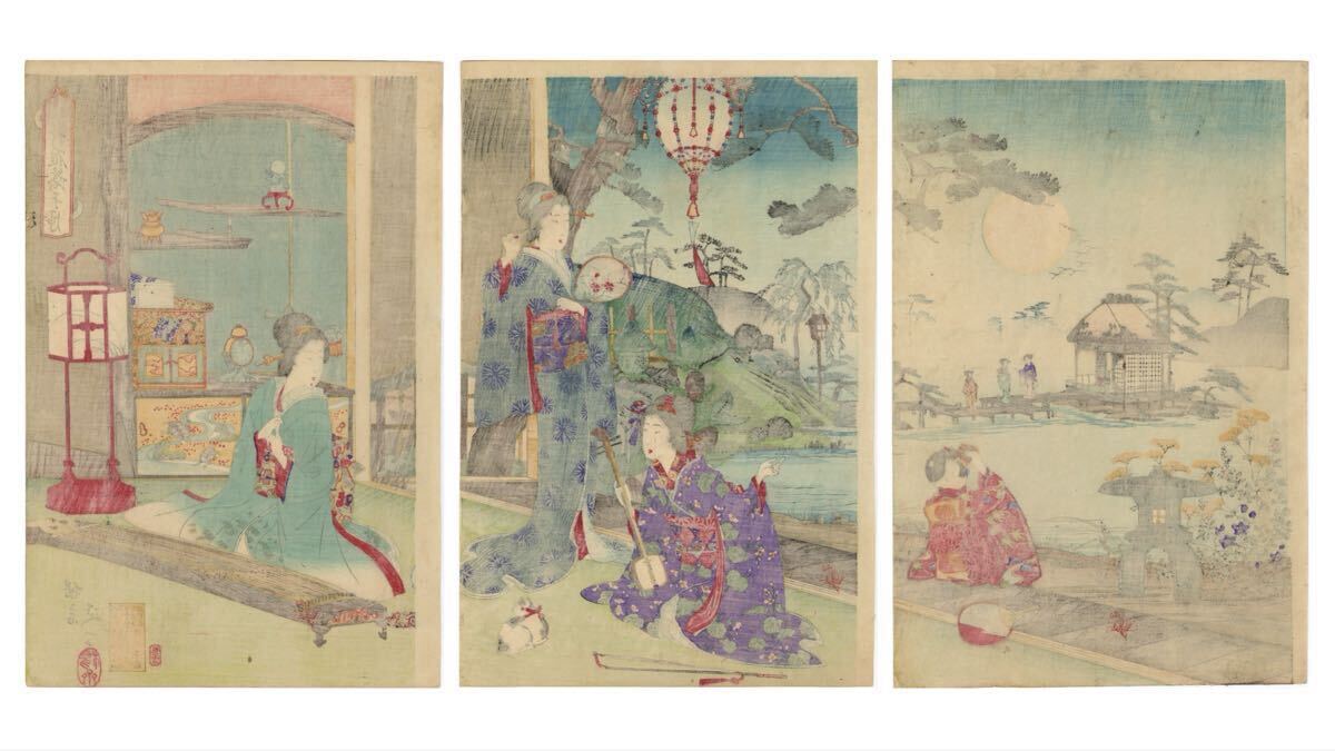 〇商品説明〇 明治23年 1890刊行 楊斎延一筆 「雪月花内・新雁落于月」です。 寸法:約25cm x37.5cm x3枚 状態良好です。 状態は画像にてご確認ください。