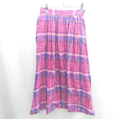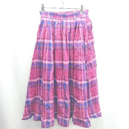 ◇ ⊂ Samansa Mos2 チェック ロング フレア スカート サイズF ピンク系 レディース E