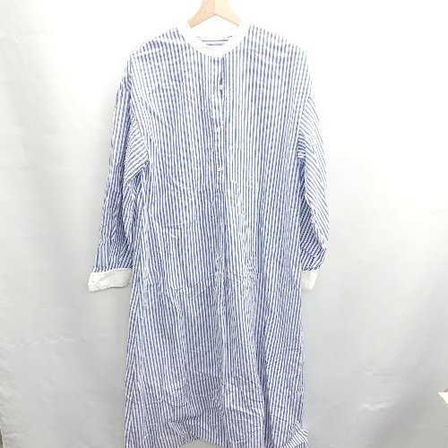 ◇ ⊂ green label relaxing ボーダー柄 長袖 ロング丈 ワンピース サイズ表記なし ブルー系 レディース E