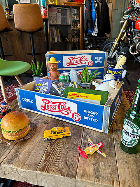 コーラがまだ瓶に詰められて出荷されてた1950年代頃、このソーダ木箱に詰め込まれて、それをトラックで全米に配達して回ってたんです。