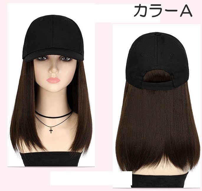 ウィッグ付きキャップ ウィッグカラーA ハットブラック ミディアムヘアー イメチェン 髪色チェンジ コスプレ ヘアネット不要 n471