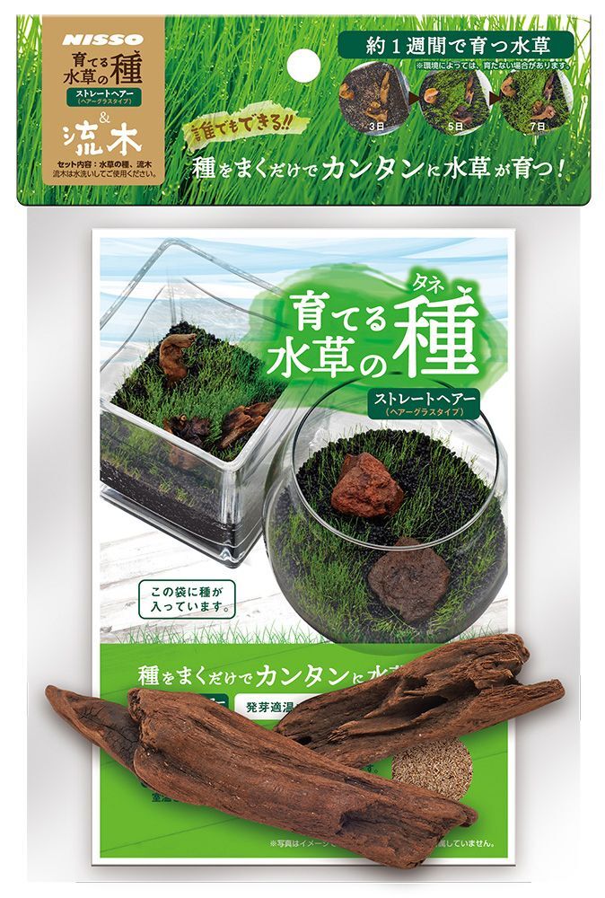 水草の種とコンパクトサイズの流木をセットにした天然素材のアクセサリーです。自分だけの水草レイアウトが楽しめます。