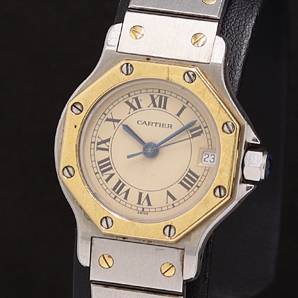 1円 稼働 カルティエ サントスオクタゴンSM W2001683 187903 36684 QZ ホワイト文字盤 レディース 腕時計 0038610 11ERT MTY