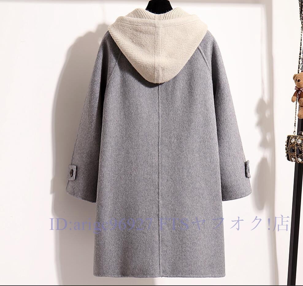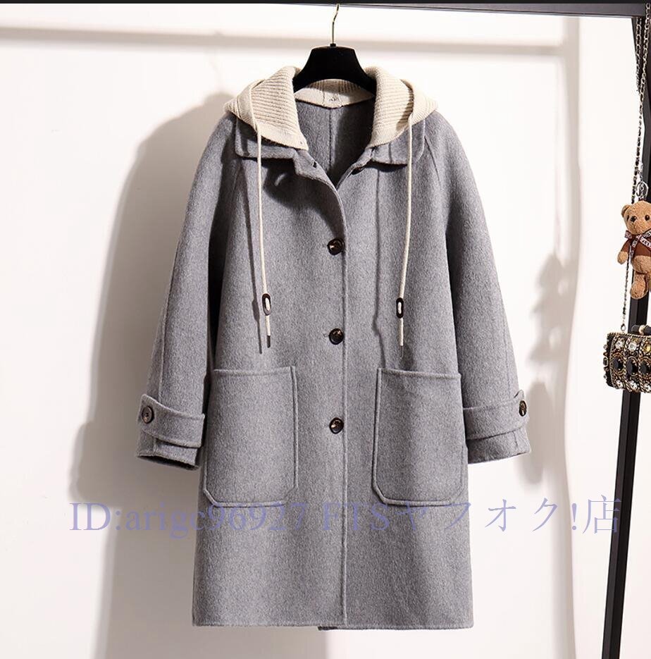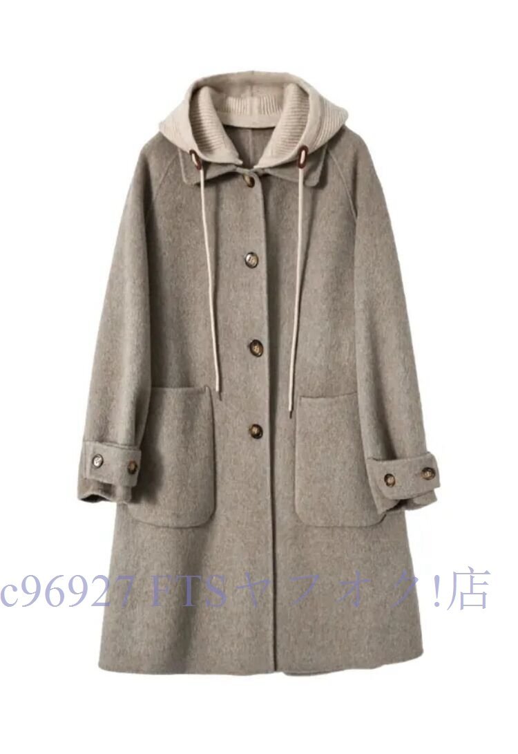 ★新品 チェスターコート レディース ロングコート 羽織 アウター ラシャ トレンチコート フード付き ラシャ コート~灰