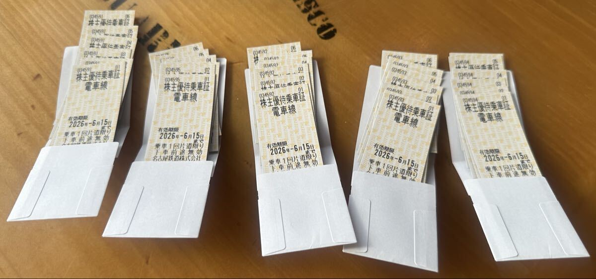 名古屋鉄道(名鉄)の株主優待乗車証(電車線片道乗車証)の6枚/5冊/30枚セットです。