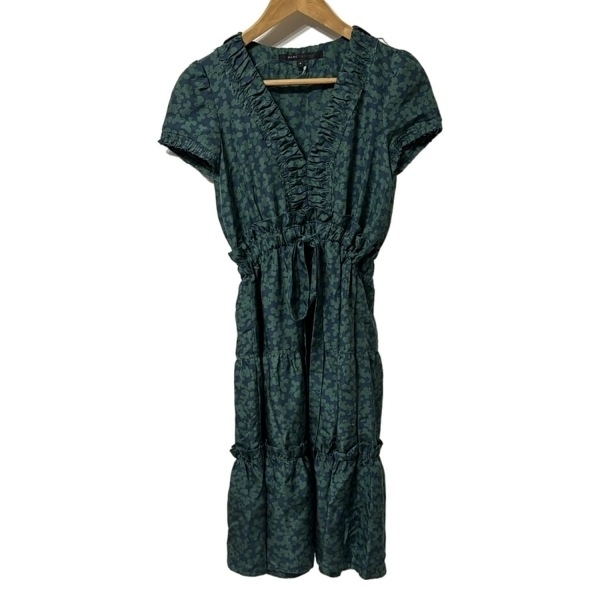 マークジェイコブス MARC JACOBS サイズ4 S - ダークグリーン×ネイビー レディース Vネック/半袖/ロング/花柄 ワンピース